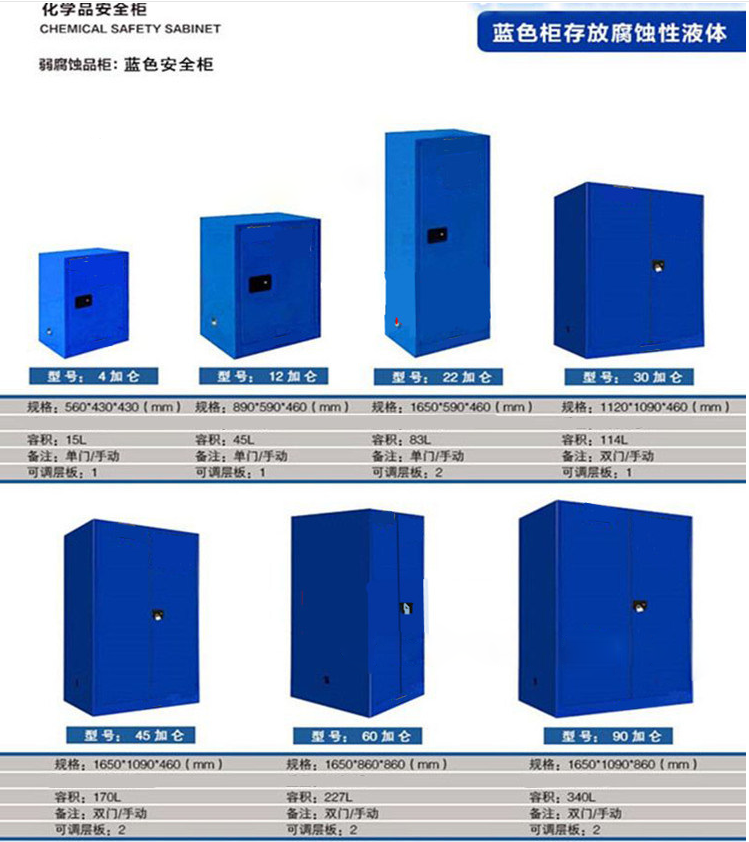 危化品柜(黃色箱易燃液體、紅色箱可燃液體、藍(lán)色腐蝕性液體)